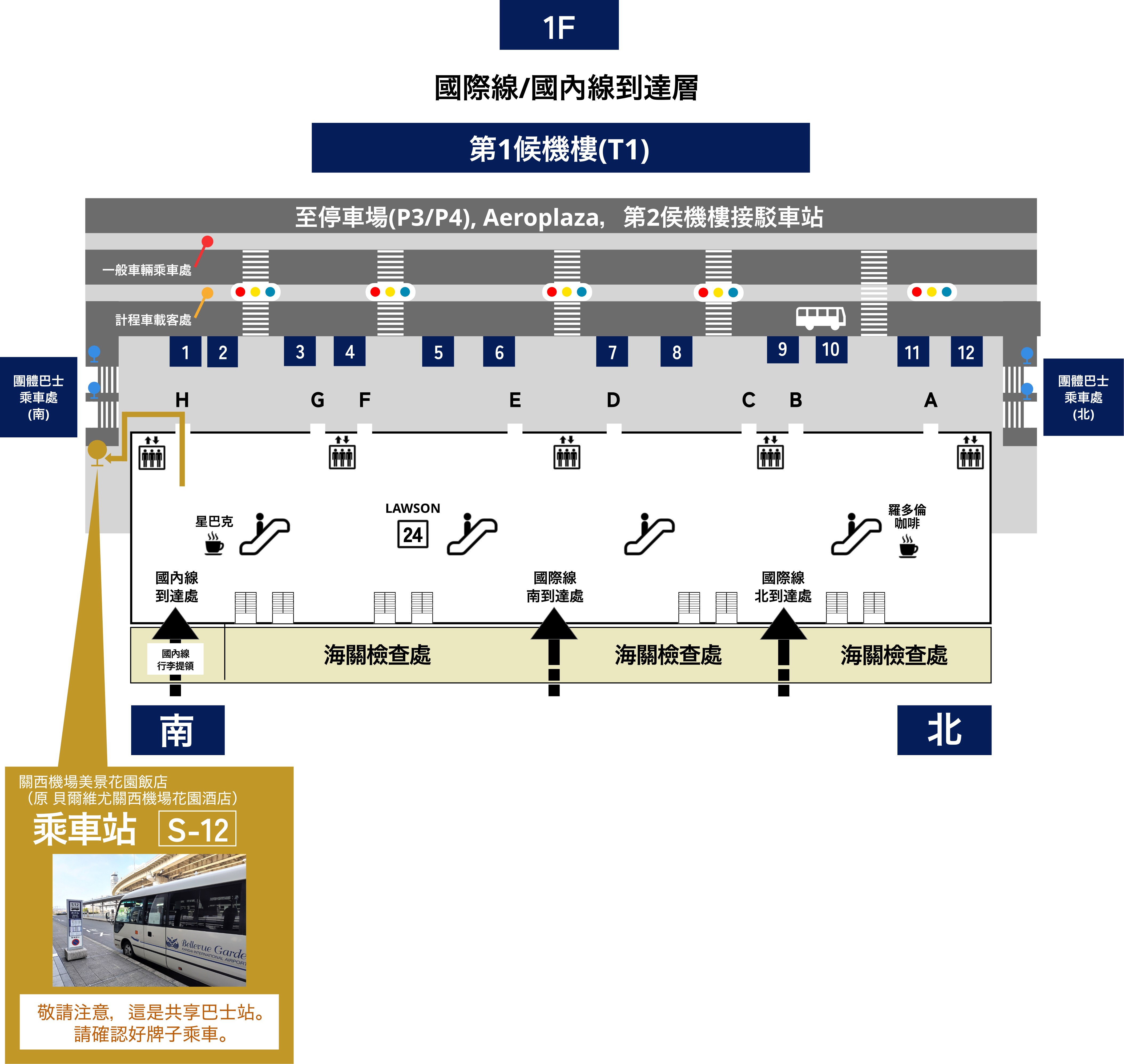 本飯店的巴士都前往關西國際機場第1候機樓。