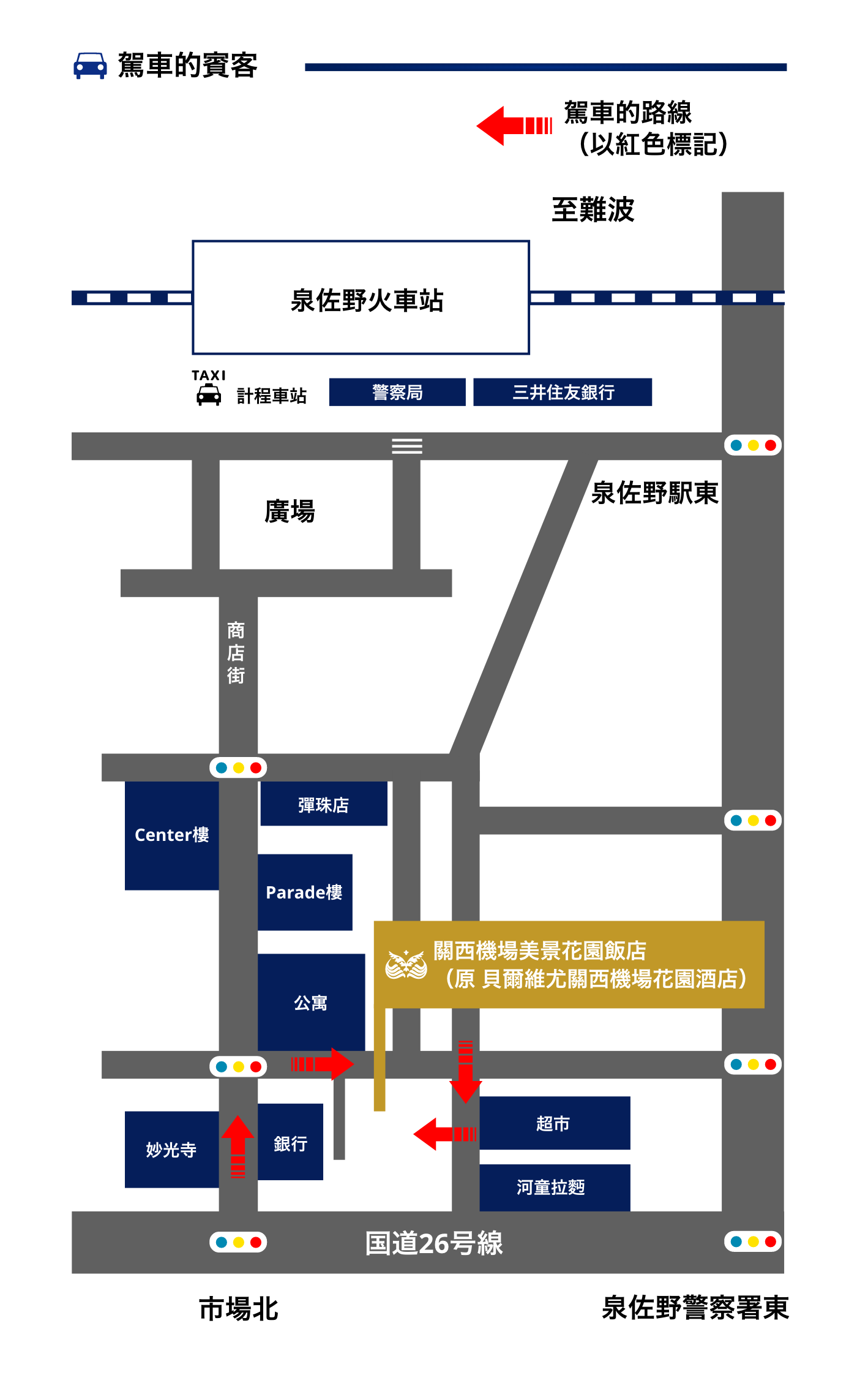 本飯店離泉佐野站步行7分鐘。