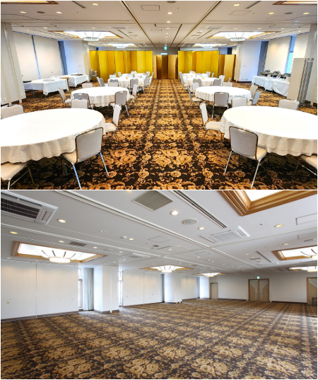 | 宴會廳 | 面積 | 面積(坪) | 正式晚宴 | 站立式自助餐 | 課堂風格 | 劇院風格 |